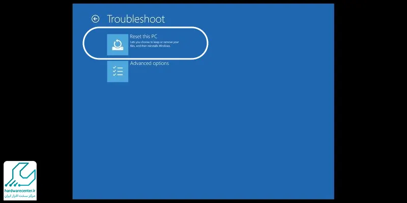 - پس از بوت شدن، گزینه Repair your computer را انتخاب کنید و وارد مسیر Troubleshoot > Reset this PC شوید. حالا بین دو گزینه Keep my files یا Remove Everything یکی را انتخاب نمایید.